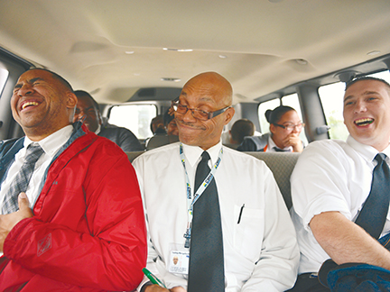 After each stop and throughout the drives, a facilitator in each van debriefs with the riders to process what they experienced. The conversations at the meetups and on the vans can be very vulnerable, authentic, revealing and raw, say the facilitators.