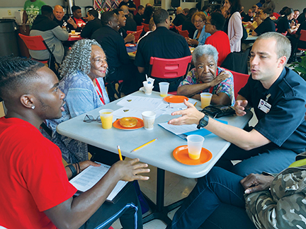 Each ride-along begins with participants boarding a convoy of vans, each seating about a dozen adults. During the approximately eight-hour experience, as the vans travel through the streets of multiple neighborhoods, Black, Thrope, Anderson and other facilitators provide commentary on the private and public housing, the community nonprofits, food pantries, churches and informal gathering places.