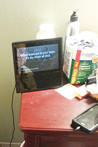 An Ascension staff member set up his device, which has built-in speakers and a 7-inch screen, and demonstrated the basics. "I just piddled around at first," Pearman says. "I listened to music from the '60s, '70s and '80s for hours on end."