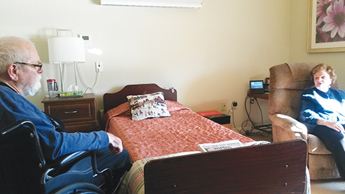 "I think it's one of the best things we've ever done," says Linda Amoroso, Sherbrooke Village's director of life enrichment. "Ten years ago, we were excited we got laptops and could go into the room and show them the Web. But this is magic to me. They can do it on their own. People have someone to talk to in their room, but it's also great when they have visitors."