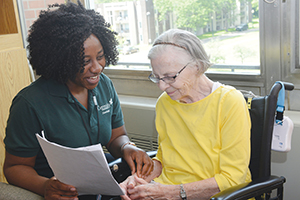 A Benedictine Health System associate assists a resident of one of the health system's communities with voter registration. Benedictine says its communities strive to ensure all patients and residents have an opportunity to fulfill their right to vote. Courtesy of Benedictine