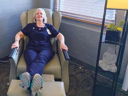 Jennifer N. Simon, nurse manager of the unit where Laugeman works, makes use of the den. "It's very relaxing and helps me center myself so I can focus and get back to the task at hand," she says.