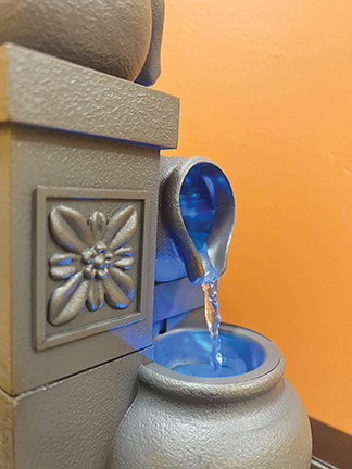 The serenity room has a sofa and reading chair, a small fountain and a mosaic artwork with the message "Called to care." It also has a prayer box for staff to drop requests. Spiritual care ministers check that box and share the requests with the rest of their team. Those requests also are shared with the Hospital Sisters congregation and with a lay group that has a perpetual prayer presence in the hospital's chapel.