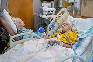 On Jan. 18, Covenant Health posted pictures on social media of Virgie at Sterman's bedside. Sterman is in his hospital bed and his wife is next to him in a reclining chair. Both are on supplemental oxygen. In one photo, Virgie and Sterman gaze at each other as she holds his right hand in her gloved hands.