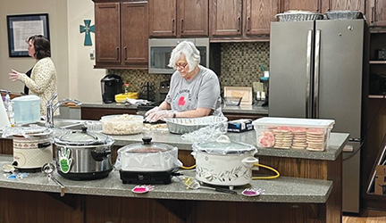 "Cooking for Caregivers," which took place at St. Paul Jan. 25, was open not only to caregivers of people receiving services at St. Paul but also to any caregivers in the community. The event included a presentation from a dietitian about how to do meal prep and how to ensure the meals are nutritious. After that presentation, attendees could taste test the seven meals that they could assemble as ready meals to take home. Next, they visited seven stations staffed by volunteers with a different meal available at each one.