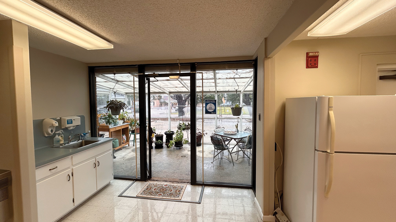 Marino started working in the building about 12 years ago when she joined the system. The facility, about 9,200 square feet, had been used for different things over the years. Because it was built as a day center, it has a large training room, a formal classroom, lots of bathrooms, and meeting areas for big and small groups. There's even a greenhouse where tenants can bring their laptops to work in a sunny spot away from their desks.
