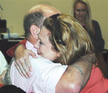 On Oct. 30, Schoenberger, Pattonville Fire District paramedics and nurses and physicians from the emergency department and ICU at SSM DePaul Health Center were honored at a Clinical Save Award ceremony at the hospital. Above, Adams and Schoenberger share a hug at the event.