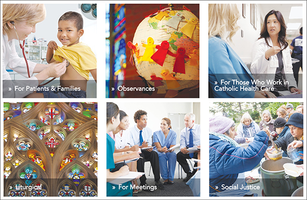 Now the prayers are organized into categories; for example, under "CHA Prayer Library" are subheadings that include "For Patients & Families," "For Meetings" and "Social Justice." "Calendar of Prayers" links prayers to holy days and events.