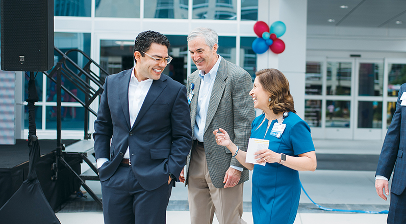 Fahad Tahir, Tony Heard and Dr. Shubhada Jagasia chat during a ribbon cutting event in September for a women's pavilion at Ascension Saint Thomas' Midtown campus. Tahir is president and CEO of Ascension Saint Thomas and ministry market executive for Ascension Tennessee, Heard is chair of the Ascension Saint Thomas Board of Directors and Jagasia is president and CEO of Ascension Saint Thomas Hospital's Midtown and West campuses.