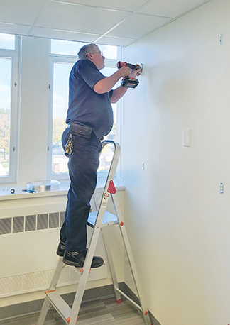 His official title is maintenance mechanic, and he works with a crew that handles work orders and does preventative maintenance, such as lubricating equipment. The crew plows the grounds and sidewalks when it snows. Members take turns staying on call for emergencies.