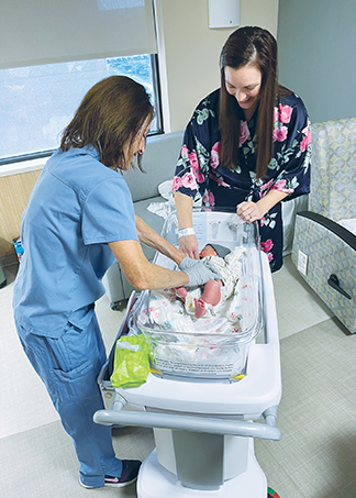 Muehlius gets to know families, learning about their lives, and she likes to joke around and have fun. She takes time to show inexperienced parents how to feed, swaddle, and hold their babies.