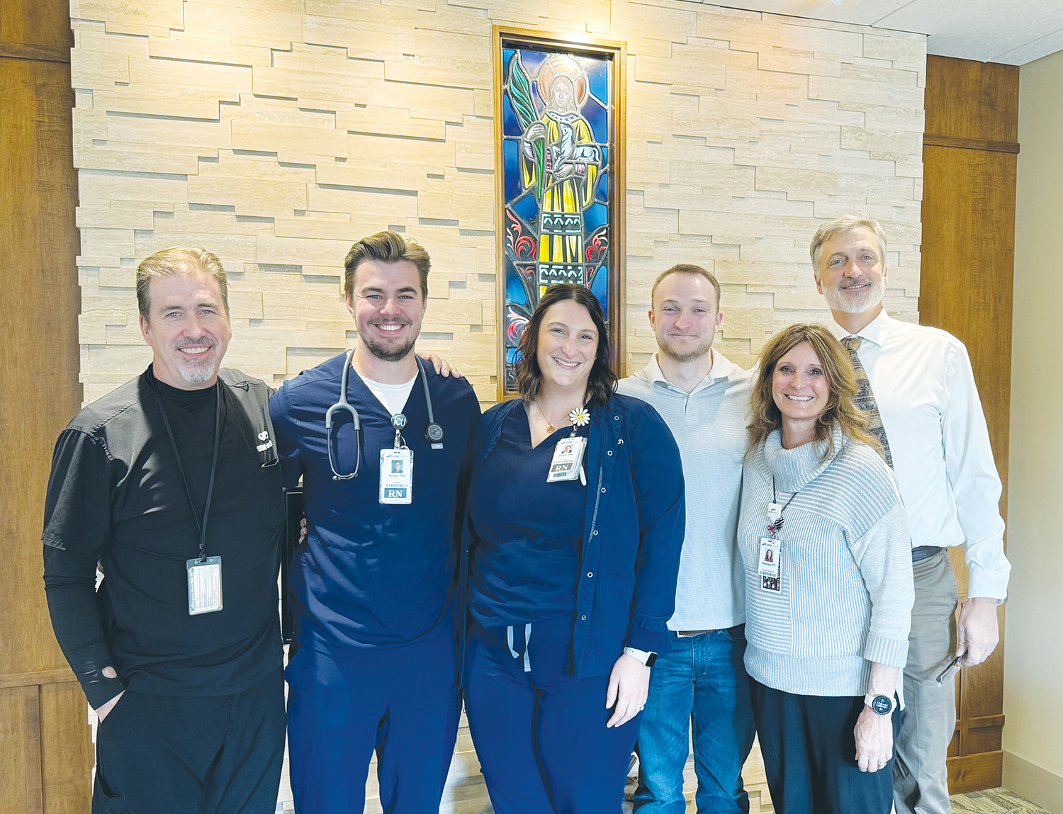 Five members of Sarah Schroeder's family also are colleagues of hers at SSM Health Monroe Hospital in Monroe, Wisconsin. From left are her father-in-law, Eric Schroeder; her husband, Bryan Shroeder; Sarah Schroeder; her brother, Jacob Kind; and her parents, Theresa Kind and Dr. Charles Kind.