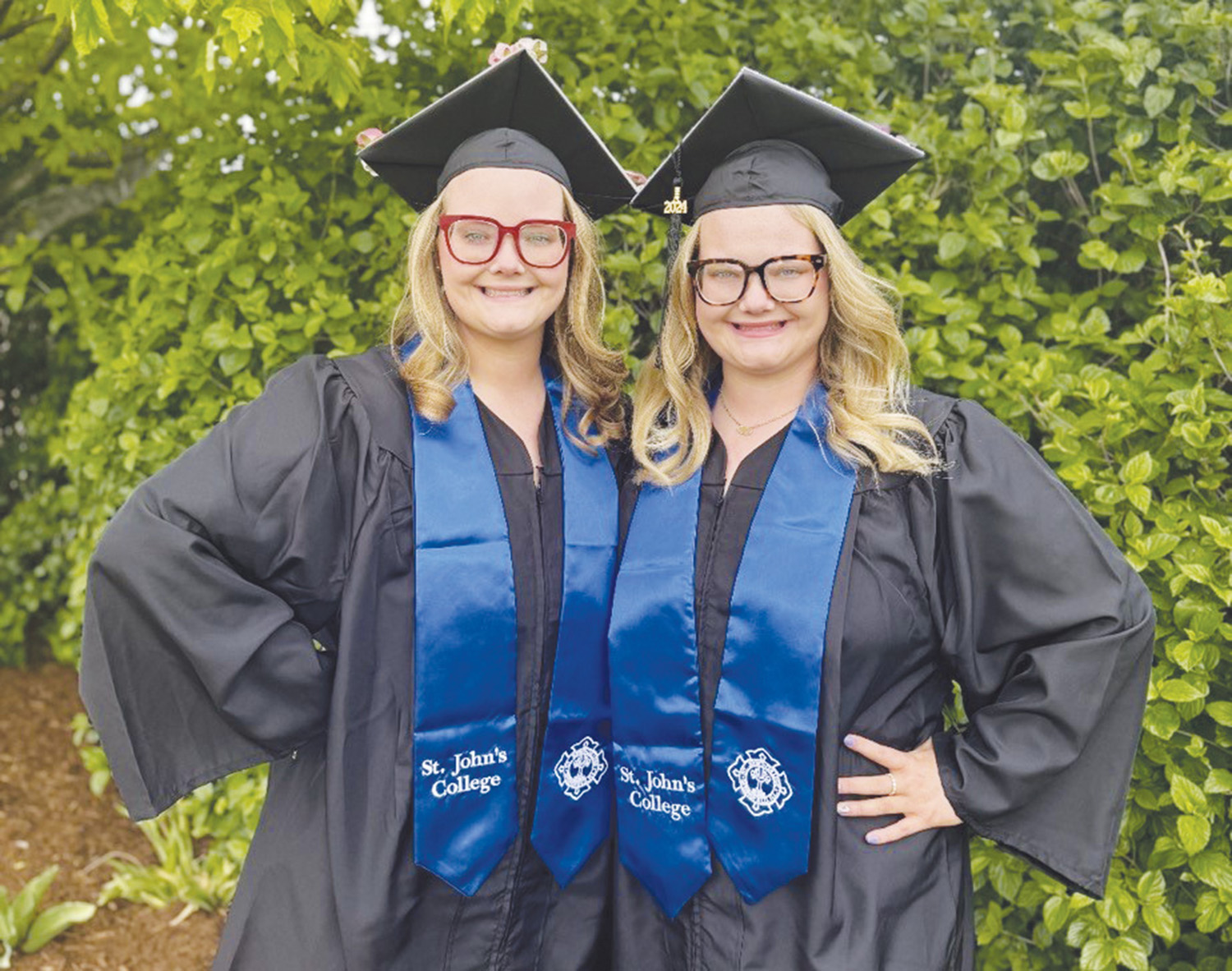 Justine Obert, left, and her twin sister, Zoey Obert, pose at their graduation from St. John's College of Nursing in Springfield, Illinois, in spring 2024.