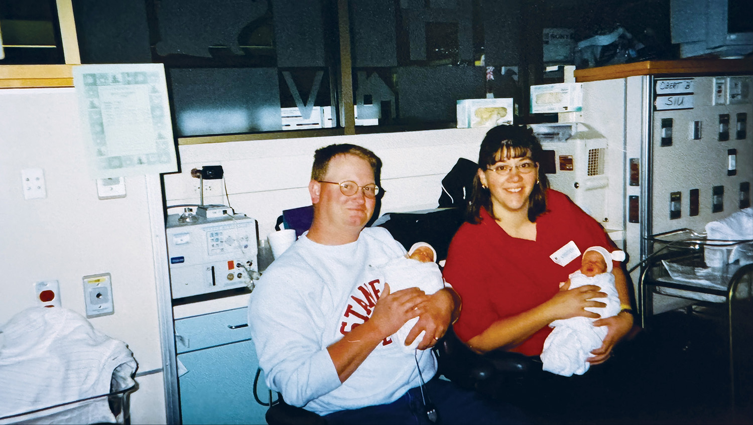 Jeff Obert holds Justine and Jody Obert holds Zoey soon after the twins were born in 2002 at HSHS St. John's Hospital in Springfield, Illinois.