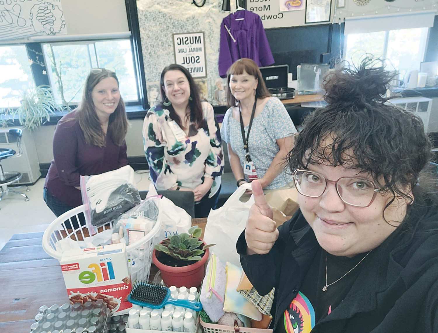 From left, Alicia Wolfe, Vanessa Haggett, Kathie Pointer and Torie Andrews display some of the hygiene items that Saint Alphonsus Regional Medical Center employees collected for students of the Baker School District in northeast Oregon's Baker City. Wolfe is mission leader and chaplain at Saint Alphonsus, Haggett is principal of Eagle Cap Innovative High School and Baker Virtual Academy, Pointer is community health worker supervisor with the Community Health & Well-Being department of Saint Alphonsus in Baker City and Andrews is a counselor at the innovative high school.