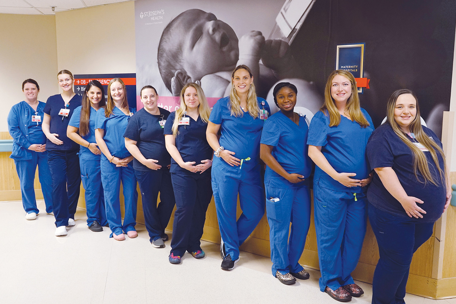 Most of these moms-to-be are giving birth in the same hospital where they provide care. St. Joseph's said in a news release that the hospital is "thrilled to share this special journey with its patients, as the women who care for them are also embracing motherhood. Everyone is looking forward to welcoming the newest members of the St. Joseph's Health family."