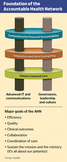 Trinity has identified five core sets of capabilities necessary for successful partnerships like these. They are: a requirement that all partners have access to advanced information technology to track patient care; compatible governance, leadership and cultures; a shared focus on patient-centered care; integration of services and joint contracting capability; and comprehensive financial accountability.