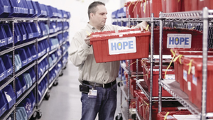 Here's how it works: Medication manufacturers and physicians donate newly manufactured or "short-dated" medicine — which might be within months of reaching an expiration date — to the dispensary. Pharmaceutical companies may mail packages or deliver medicine by truck. Participating physician practices receive reusable red "hope boxes," which they fill with sample medications and ship back to the warehouse. More than 1,000 U.S. physician offices donate using hope boxes. Dispensary of Hope staff tracks every shipment that arrives down to the pill, and post available medications on the organization's web-based inventory list.
