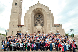At the close of the Mass, Sr. Carol invited ministry members and their families to gather for a group photograph "with 800 to 1,000 of our closest friends" on the shrine's front steps. Old friends and new colleagues came together on the grand stone steps to mark the occasion.