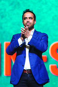 Pasricha told assembly attendees the seeds of his evolving philosophy that happiness lies in the simplest of things had their roots in his childhood. He and his sister grew up in Canada, the children of new immigrants who lived modestly in their new country. The children lacked for nothing, but they took that stability for granted as most children would. His father often told his children to appreciate how lucky they were. That advice would prove inspirational to Pasricha early in his adult life when he was brought low by circumstances.