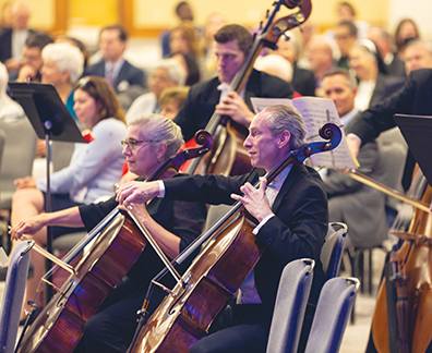 In addition to educational sessions and networking opportunities, the event featured live music that celebrated the reunion. The band Protocol performed Curtis Mayfield's "People Get Ready," Barry Manilow's "One Voice" and other songs in the main ballroom at the JW Marriott Indianapolis. A maestro conducted 45 symphony musicians in a session that drew an analogy between the personal attributes a conductor harnesses to elicit a masterfully synchronized performance from professional musicians and the attributes that allow senior managers to unleash creative productivity in their workforce.