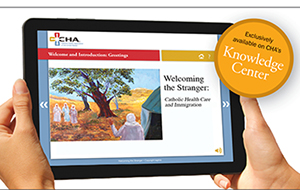 CHA has created an e-learning module for ministry members to provide an overview of the position of the church and the Catholic health ministry on caring for immigrants. "Welcoming the Stranger" is available by logging into the CHA Knowledge Center. Participants can complete the online learning by themselves or use a facilitator's guide to take part in the learning and a discussion as a group. Additional printable resources are available with the electronic educational module, such as a prayer and a list of resources related to advocacy on behalf of immigrants.