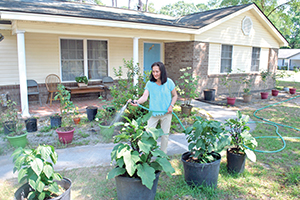 Deborah Caoeng does some yardwork at home. A program from her employer, St. Joseph's/Candler Health System of Savannah, Ga., provided resources for buying the home.