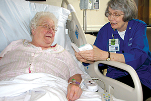 When she steps into a patient's room, after a gentle knock, she takes a deep breath, prays silently, "Lord be with me," and then just "lets it flow." She starts with small talk: What brought you into the hospital, she might ask, and do you have family in town? Then, as the conversation proceeds, she listens for a "care gate" — some subtle prompt suggesting that this particular patient is open to going a bit deeper, to sharing stories related to religious or spiritual beliefs, or to engage in a few minutes of mutual prayer.