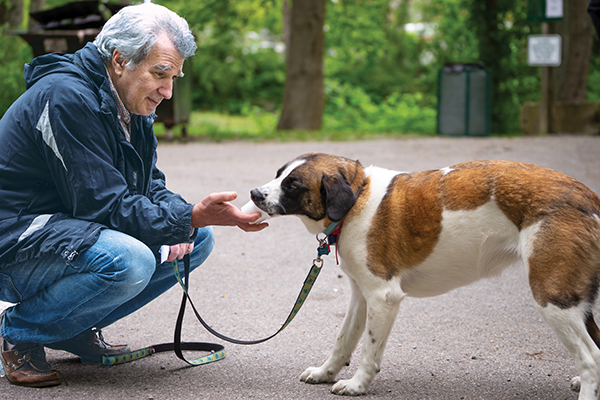 Dr. Frank LaBarbera, an obstetrician and gynecologist affiliated with St. Claire HealthCare in Morehead, Ky., shares a frozen treat with his dog during a PAWS for Behavioral Health gathering on May 11. The event was hosted by St. Claire HealthCare at the Morehead Dog Park as part of Mental Health Awareness Month. Pet owners learned how communing with a pet can reduce loneliness and stress, lower blood pressure and improve cardiovascular health. Dogs and people enjoyed free ice cream while hearing from Morehead Mayor Laura White Brown and other guest speakers. St. Claire HealthCare is a not-for-profit health system sponsored by the Sisters of Notre Dame — Covington Province.