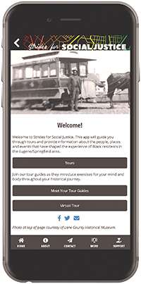 PeaceHealth teamed with Eugene Marathon organizers to create Strides for Social Justice, a free app available from Google Play or the Apple App Store. Users get access to tours of Black history sites in Eugene and suggestions for exercise interludes. Walkers, runners, bikers and skaters can navigate from landmark to landmark in a neighborhood, reading about local history at the stops. The routes are wheelchair accessible.