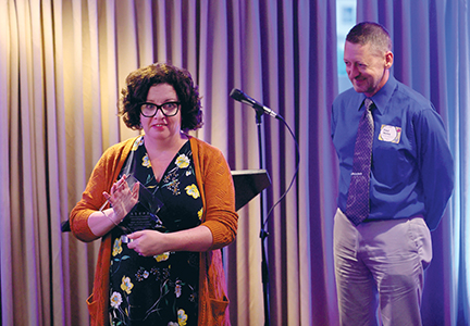 have brought about change within their industries. Below, Health Progress Editor Betsy Taylor accepts the award from Paul J. Heney, the foundation's president.