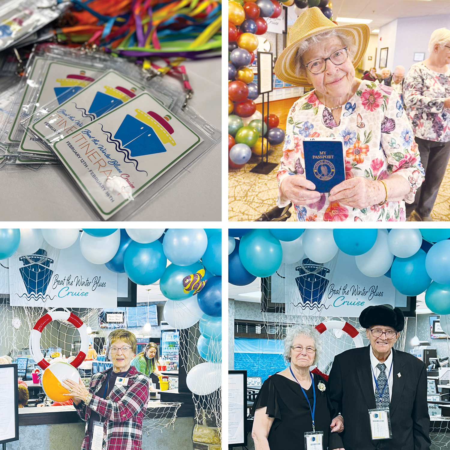 During the cruise weeks, decorations transform community spaces into a luxury liner's deck and window views into tranquil ocean scenes. Residents can flit between on-ship activities like a captain's dinner — sequins and suits encouraged — and off-ship outings such as a tour of the ornate Our Lady of Victory Chapel at St. Mary's Central High School in Bismarck. The cruise directors, the community's staff, also make use of virtual reality technology to teleport the landlocked travelers on sightseeing excursions.