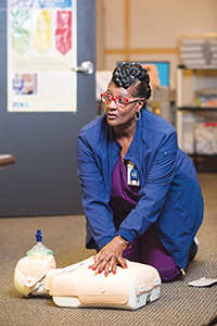 She looked at the phone and saw a photo of a giant heart and a message that someone in a nonclinical area of her building needed cardiopulmonary resuscitation. She rushed to the location and started chest compressions on a woman who had collapsed to the floor. Johnson got the woman's heart pumping before an emergency response crew arrived on scene.