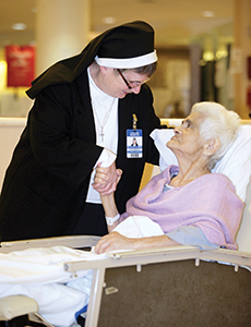 Michael Brescia said one way staff treat patients in a sacred way is to "glorify the body." Calvary nurse Andrea Mejia explained, "We wash and comb their hair, we shave them, we clean their mouths, give them baths, we check their skin, we clip their nails, we take them to our beauty salon. We change their sheets several times a day."
