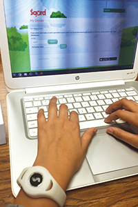 Participating children carry a monitor about the size of a wristwatch, which collects data they transfer to computers through Sqord's software. They compete by sharing and comparing their point results with other children.