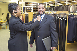 She learned how to measure men for suits from an experienced tailor. Fabric Care Center, a local business, donates more than $60,000 worth of free dry cleaning each year. Last summer, Payless ShoeSource sent $2,000 worth of gift cards to buy new shoes for the closet.