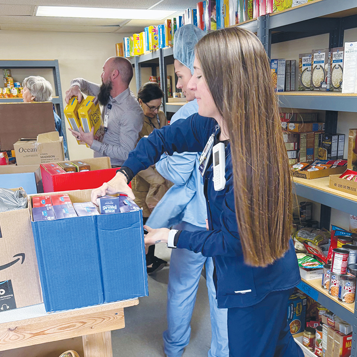 ST. CHARLES, MO. — After they packed boxes with goods, loaded the boxes onto carts, pushed the carts across the street and carried their cargo down to the basement food panty at St. Peter Catholic Church, the three dozen or so SSM Health St. Joseph Hospital — St. Charles and Wentzville, Missouri, staffers looked around as if to say: “What next?”