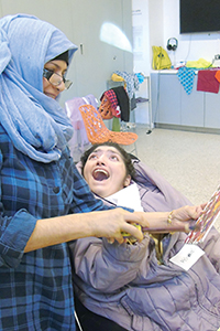 Both sites admit patients from infancy through age 21. Some patients require ventilators to breath, some take all nourishment through a feeding tube. Almost all are unable to walk and so use wheelchairs. Many of these patients will not survive to adulthood and will live out their lives at the facility.