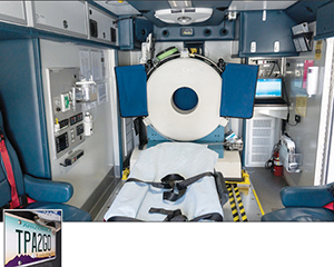 The stroke unit was out on an emergency call when Waters met with the journalists, as it has been on 300 occasions since it was commissioned. (About one-third of those calls were for patients diagnosed with stroke.) On this day, the unit returned after about an hour and the group got a look at the portable CT scan and angiogram, and audiovisual telemedicine communications system that make it possible to safely administer TPA in the field.