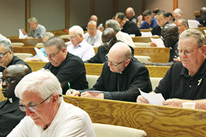 Upward of 70 priests, deacons and other clergy took part in the April 18 meeting at Holy Family of Joseph, Mary and Jesus Catholic Church in Victoria. The diocese spans 10 counties between Houston and Corpus Christi. Nearly 104,000 Catholics are registered in its 50 parishes.