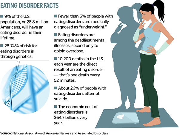 The more common forms of eating disorders are anorexia nervosa, bulimia and binge eating — any one of which can lead to nutritional issues and serious, even irreversible or deadly physical maladies.
