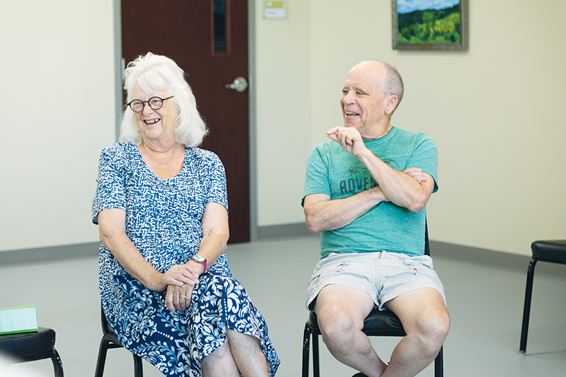 But the bread and butter of the centers' caregiver offerings are the numerous support and social groups that caregivers can access. Many are available as hybrid in-person and virtual gatherings. There are groups available for women caregivers, men caregivers, couples in which one person is living with dementia, and people transitioning out of caregiving after their loved one's death. There are exercise, gardening, journaling and spirituality workshops, all geared to caregivers. Sometimes the workshops are open to people living with chronic conditions. There also are group series on the legal aspects of caregiving, sexuality between caregivers and their spouses with dementia, and loss and grieving. More groups and sessions are being added continually.