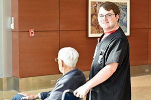 The best part of Alex Seacrease's day as a patient transport specialist at Mercy Hospital St. Louis comes when he strikes up a conversation with the people he's wheeling to tests, X-rays, surgery or the front door for discharge.