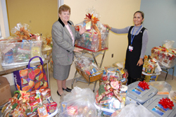 Here, in 2010, Sr. Marion Scranton, S.C., St. Mary's vice president of mission, and Luz Flores, a community outreach worker, show off baskets collected through the drive.