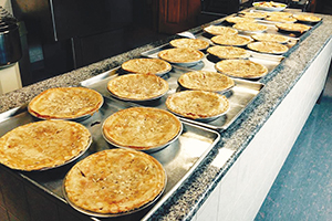 Out the window, a parade of young children, with the little girls in bonnets, skip and ride by on bicycles. Inside the spotless kitchen, five women stir soups in stock pots, prepare chicken and set out 20 apple pies to cool before dinner.