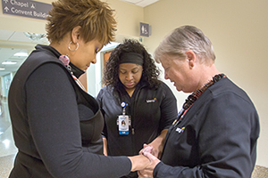 Taking part in the prayer ministry is fulfilling for those offering the prayers, says Payne. She notes that many on the prayer team are not in clinical roles; praying makes them feel more a part of the healing work of the Catholic health ministry. "This is what we're called to do — to reveal God's healing presence, and we do this for the community," she says.