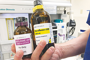 Most anesthesiologists use one of two gases during surgeries: desflurane or sevoflurane. Patients who are put under metabolize 5 percent of the gas when they inhale. The rest is exhaled into a ventilation system and makes its way outdoors.
