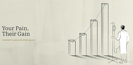 The campaign points out that insurance companies profit from denying care. Healthcare Here says that commercial insurers have raised premiums 14.5% over the past five years, and that average denial rates increased by 23% between 2016 and 2020. The campaign website cites a study from Becker's Payer Issues that says profits from several major carriers went up 7% to 70% in 2022.