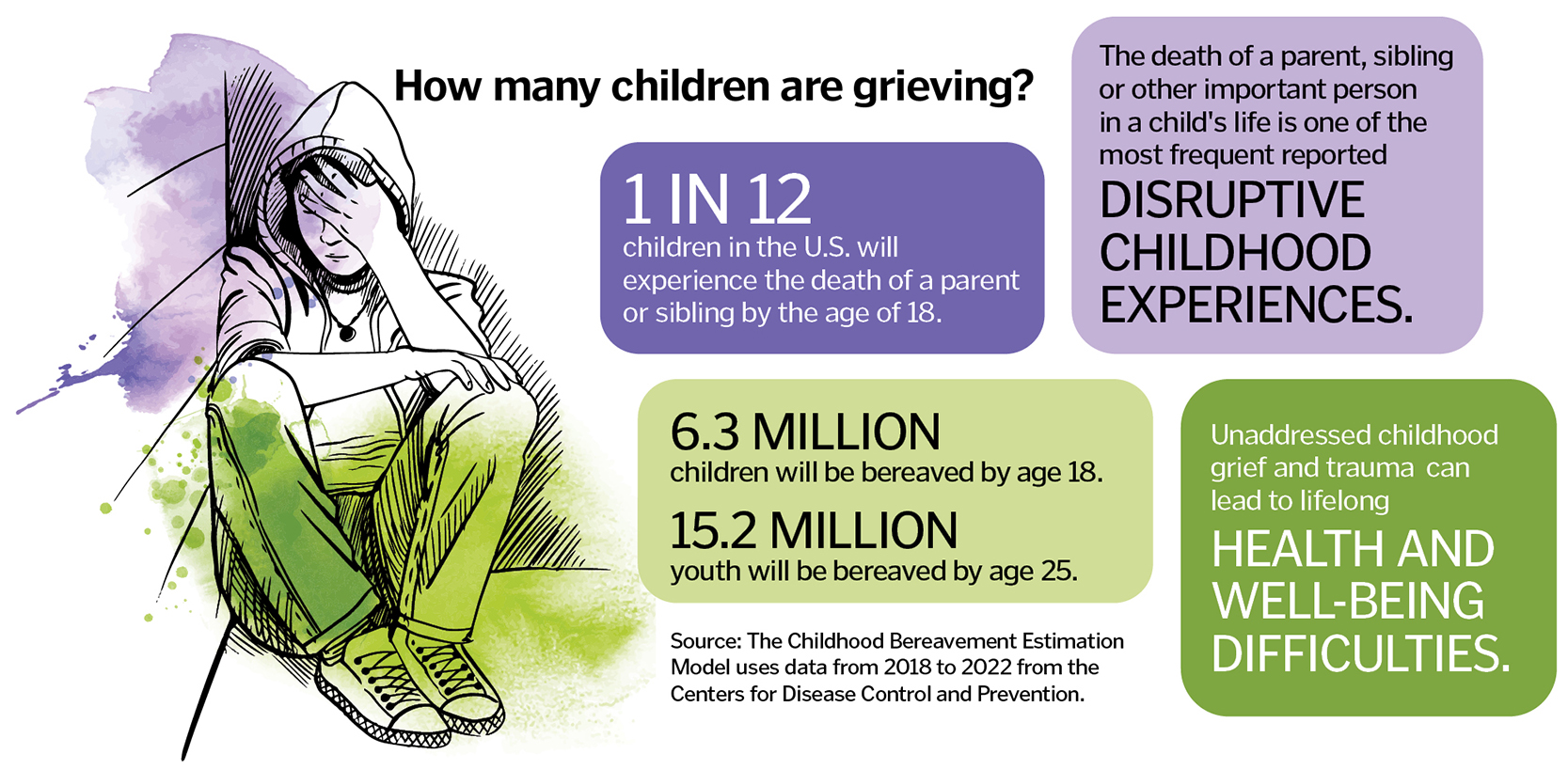 One in 12 children in the United States experiences the death of a parent or sibling by the age of 18, according to the Childhood Bereavement Estimation Model,