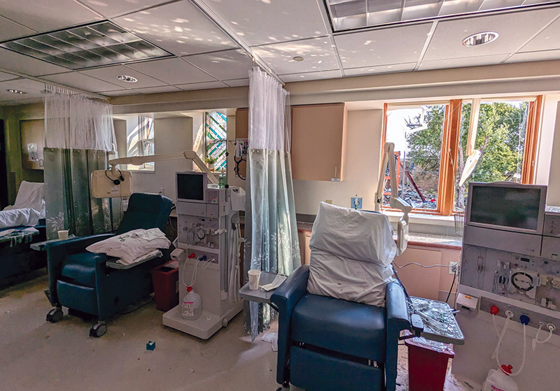 The dialysis unit was among the spaces at Avera St. Anthony's Hospital damaged in the blast. Windows, doors and utility systems needed repairs. Most services at the hospital have resumed in recent weeks.